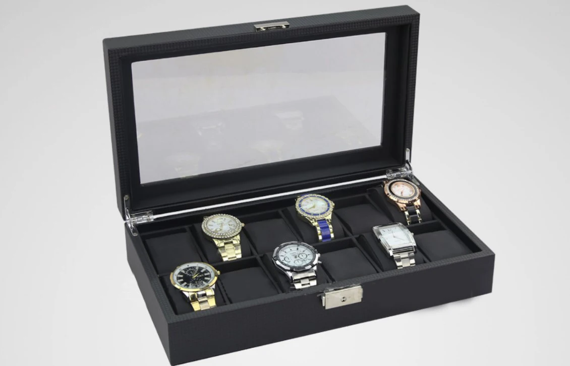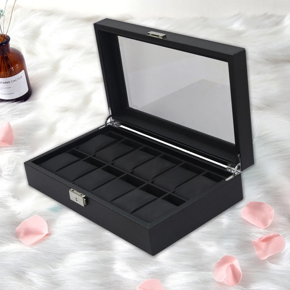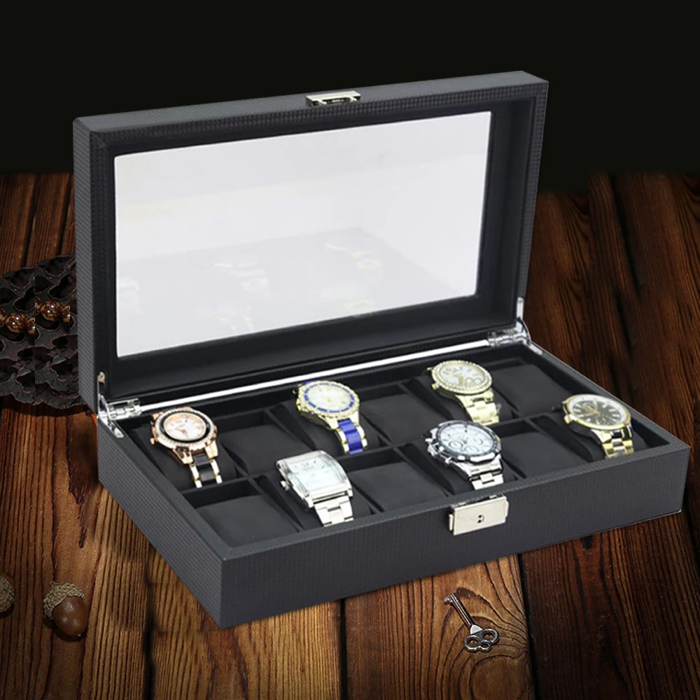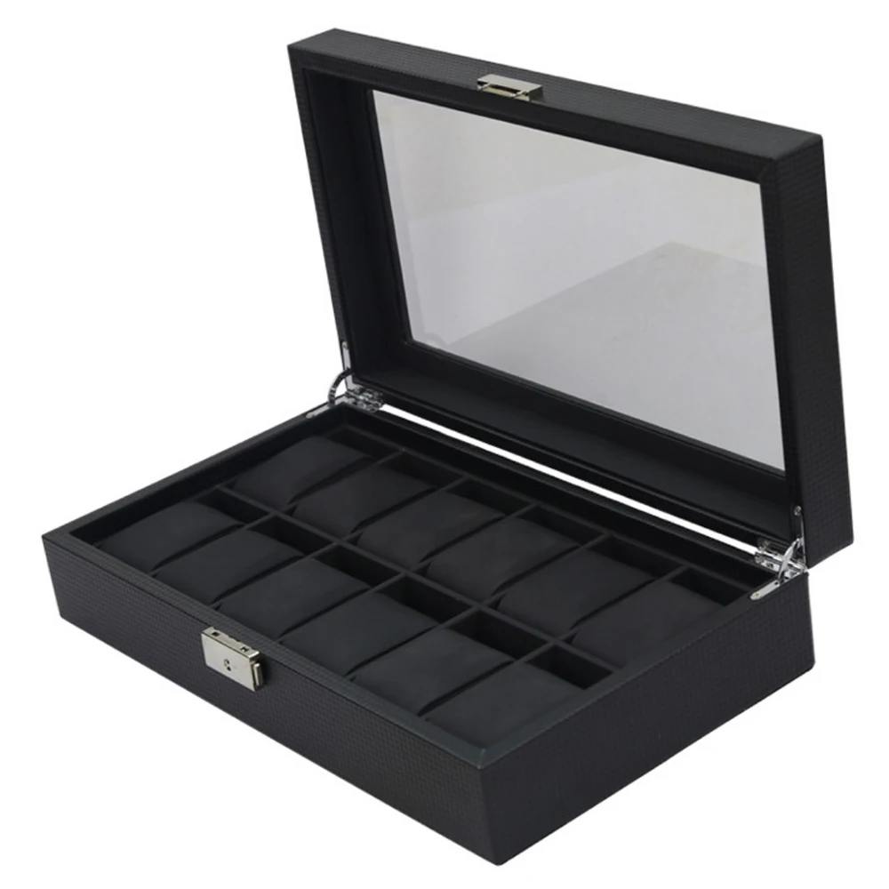 12 чехлов для часов, коробка для хранения часов, Роскошный чехол для коллекции часов, отделка из углеродного волокна