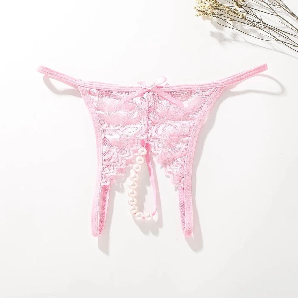 Трусики с кружевной вышивкой и жемчугом размера плюс, женское сексуальное нижнее белье с открытой промежностью, стринги для секса с бисером, эротическое нижнее белье 40