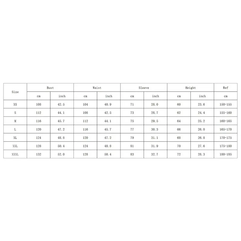 Размер-L (обхват груди/обхват груди: 120 см/47 "-48", обхват талии: 116 см/45 "-46", рукав: 77 см/30 "-31", высота: 66 см/25 "-26",Ref165-170cm) Особенности