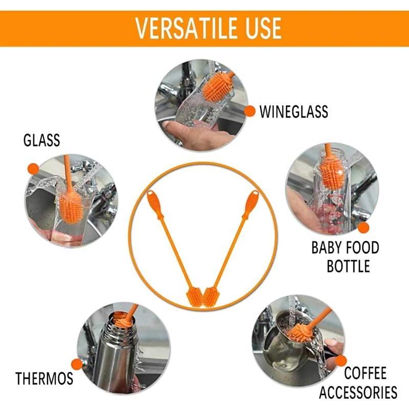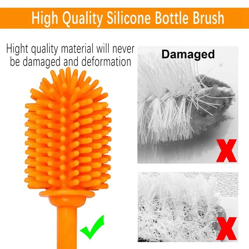 Многофункциональные чистящие средства-силиконовая щетка для бутылки с водой предназначена для того, чтобы добраться до каждого уголка бутылки, чтобы правильно очистить их, удаляя остатки. Используйте силиконовую щетку, чтобы держать ваши блюда, бутылки, спортивные бутылки, детские бутылки, inf использовать rs, фляги, термосы, трубки, молокоотсосы, кухонные приборы и многое другое, гигиеническая чистка. Но не помещается в пивные/винные бутылки.