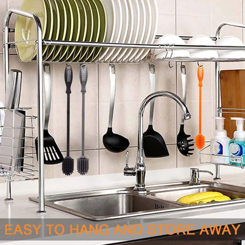 Нет царапин-силиконовая щетка для бутылок, с одной стороны есть легкая ручка Подвески для удобного хранения! На другом конце мягкие, гибкие и не царапающиеся силиконовые щетинки. В отличие от впитывающих и подверженных бактериям пластиковых и нейлоновых кистей, они не царапаются, не Впитывают жир, неприятные запахи и не накапливают бактерии.
