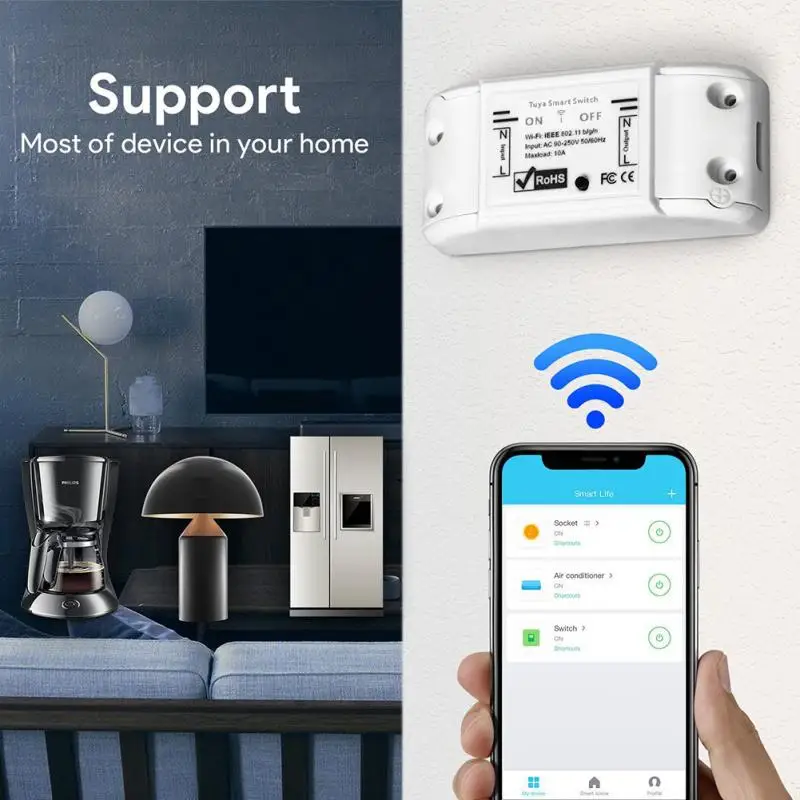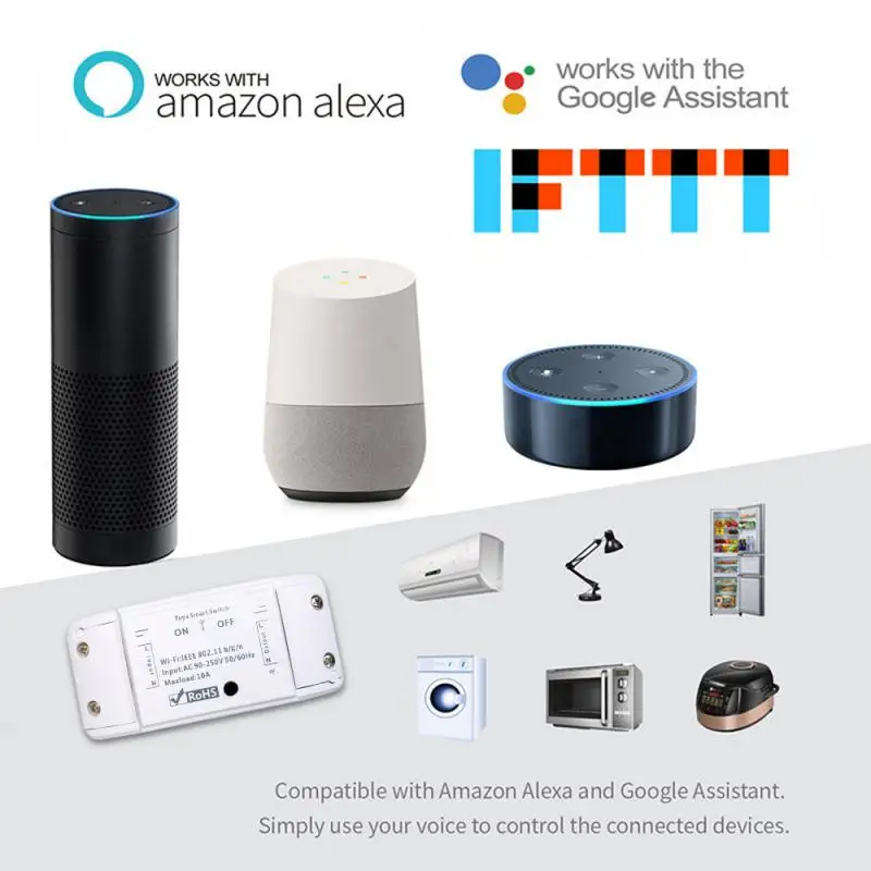 【 Голосовое управление без рук 】 основной переключатель WiFi совместим с Amazon Alexa и Google Home Assistant. Он позволяет использовать ваш голос для управления домашними устройствами и наслаждаться бесконтактным опытом