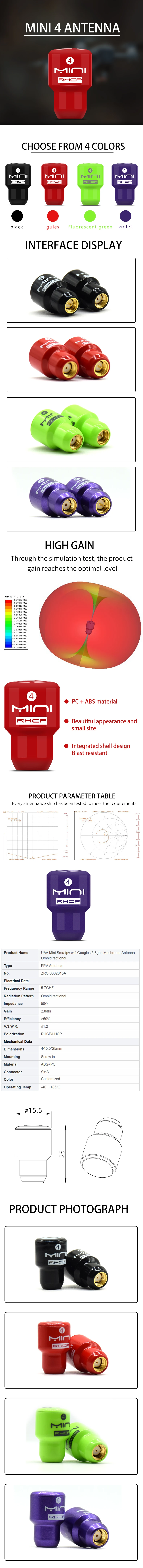 Диапазон частот: 5,7 ГГцУзор излучения: всенаправленныйСопротивление: 50 ОмКоэффициент усиления: 2.8dbiПоляризация: RHCPВес: 4,7 гРазмеры: 15,5*25 ммСпецификация по умолчанию RHCPЗаказала эту футболку, под свои джинсы. Товар пришел а отличном состоянии. Футболка идеально подошла по размеру. После стирки не села,... Читать отзыв полностью...