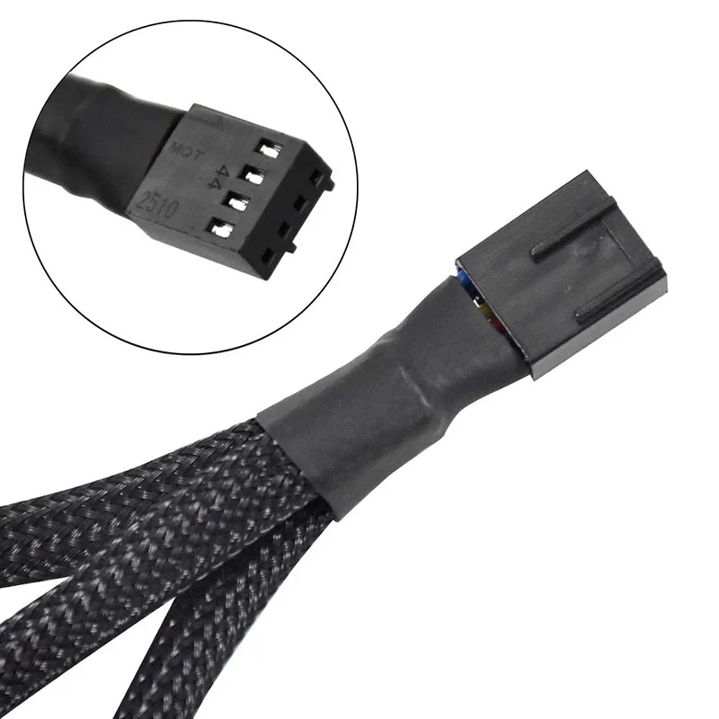 Посылка включает в себя: 4 шт 4-контактный разветвитель вентилятора кабеля в общей сложности. Пожалуйста, обратите внимание, что только 4-контактные вентиляторы могут использовать контроль скорости.