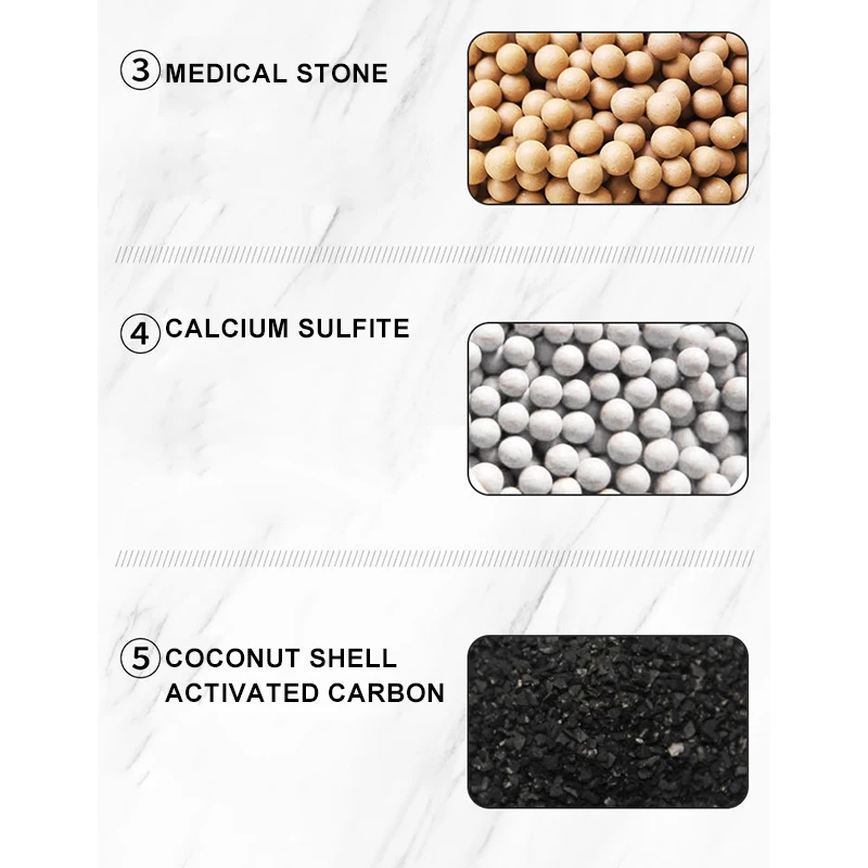 Этот продукт проходит через внутренний дренажный слой для достижения быстрой стратифицированной фильтрации и очистки, которая может удалить остаточный хлор, и другие загрязнения в водопроводной воде.