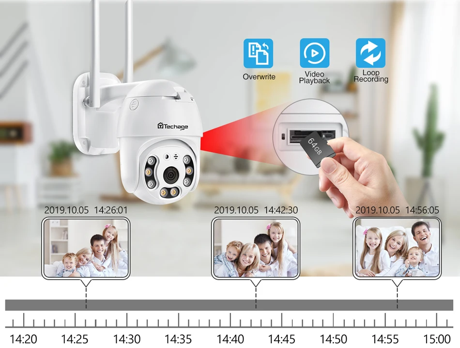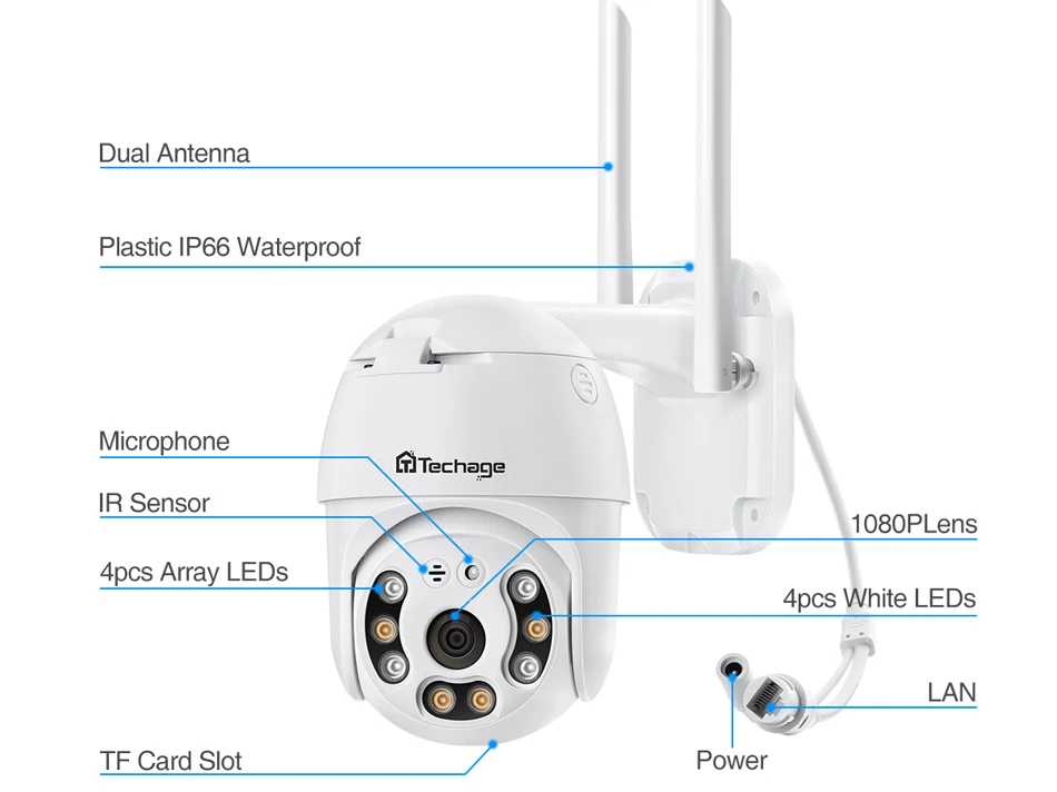 Поддержка TF карты макс. 128 ГБ и один месяц бесплатной облачной записи.