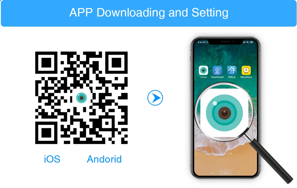 Удаленно просматривайте через приложение iCsee или XMeye на смартфоне