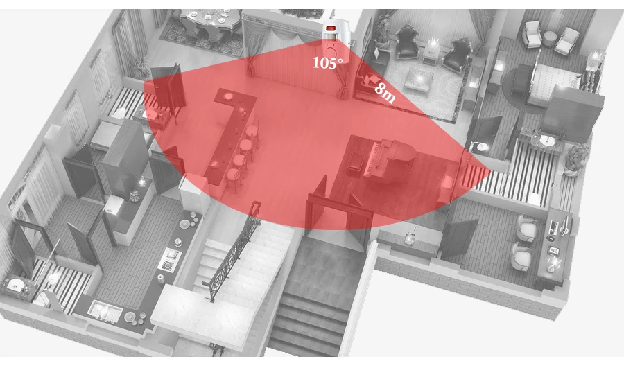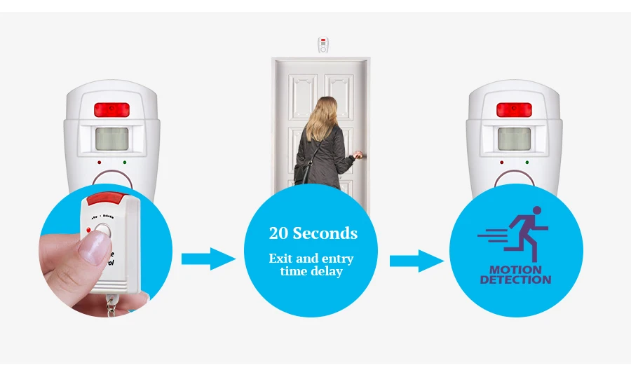RELIABLE & REALISTIC RANGE - alarm are sensitive to detect motion from people. The detect range is up to 8M and 105 degree ; and the remote control is up to 6M