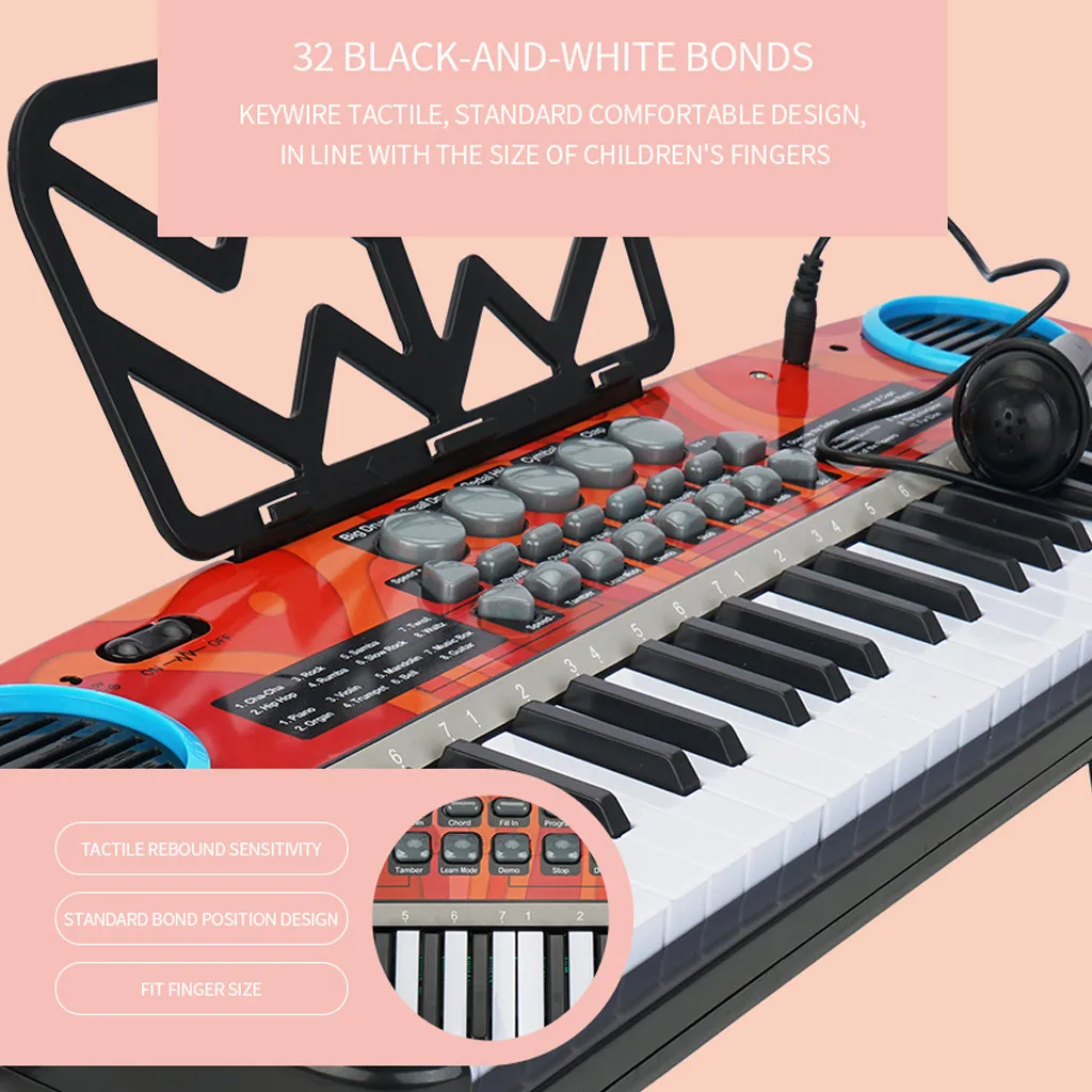 49-клавишное электронное пианино для детей: 49 тонов + 11 мелодий + 4 барабана + 5 тонов +