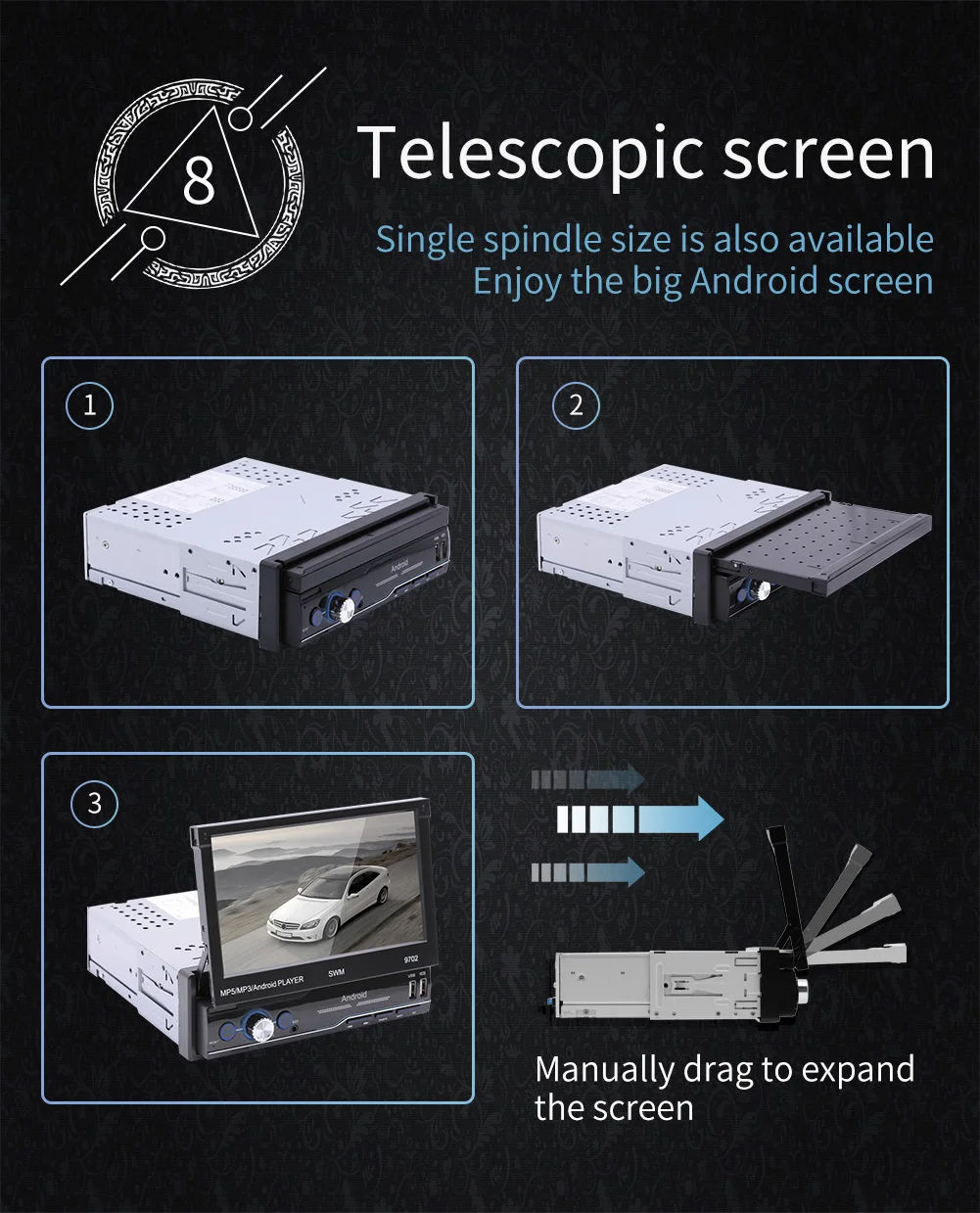 9702 1Din Телескопический экран Автомобильный MP5 мультимедийный плеер с функцией заднего изображения вождения