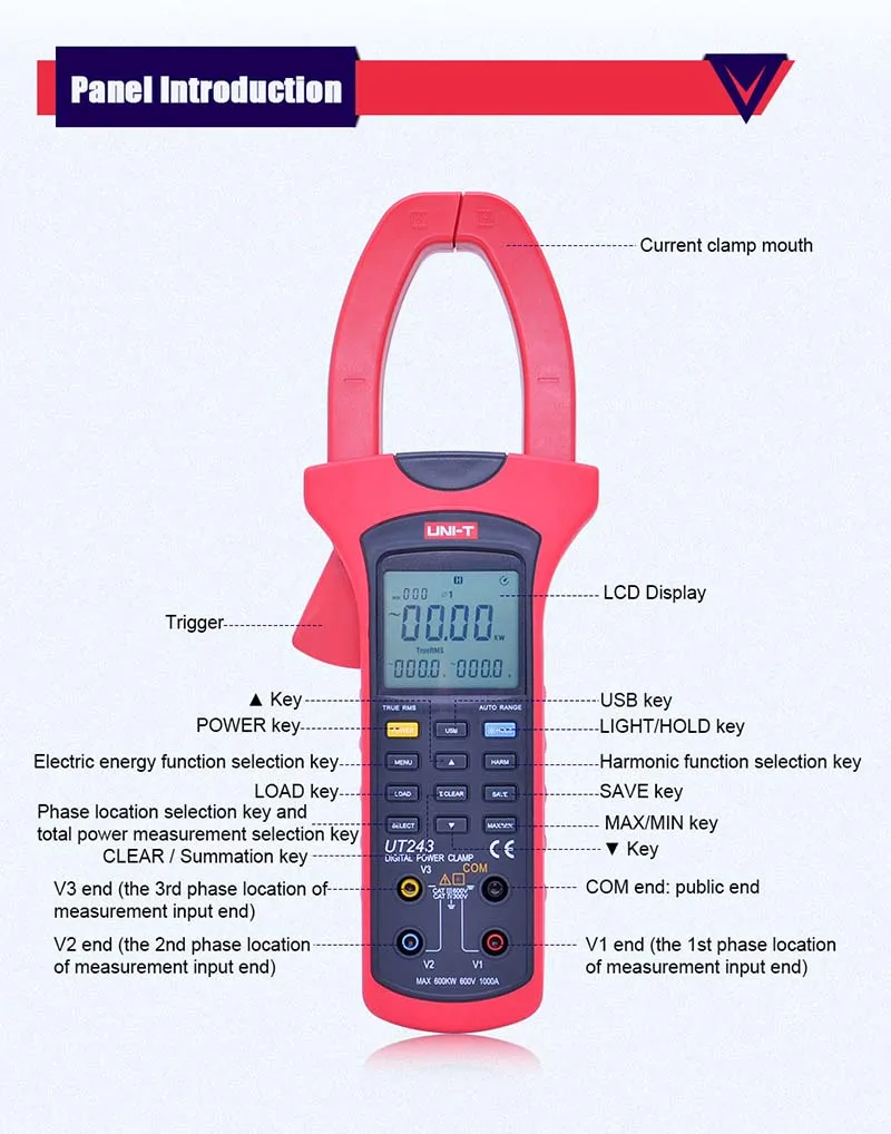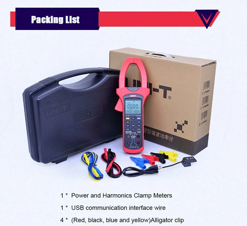 UT243-умный, портативный и стабильный измеритель мощности и гармоник с функциями цифрового амперметра И измеритель мощности. Он может измерять напряжение, ток, активная/реактивная мощность, коэффициент мощности, фазовый угол и многое другое. Серия UT243 может измерять отдельные гармонические компоненты до 20 раз. Применение: Он может быть применен в электрооборудовании/источнике питания, измерении цепи и оценке качества электросети. 1. Измерение истинного напряжения RMS/тока 2. 3-фазные 3-проводные, 3-фазные 4-проводные и однофазные 2-проводные измерения 3. Двойной ЖК-дисплей с 10000 счетами 4. Обнаружение последовательности фаз 5. Макс/мин режимы 6. Автоматический диапазон, автоматическое выключение питания, подсветка, индикация низкого заряда батареи 7. Оснащен USB интерфейсом и ПК программного обеспечения CD