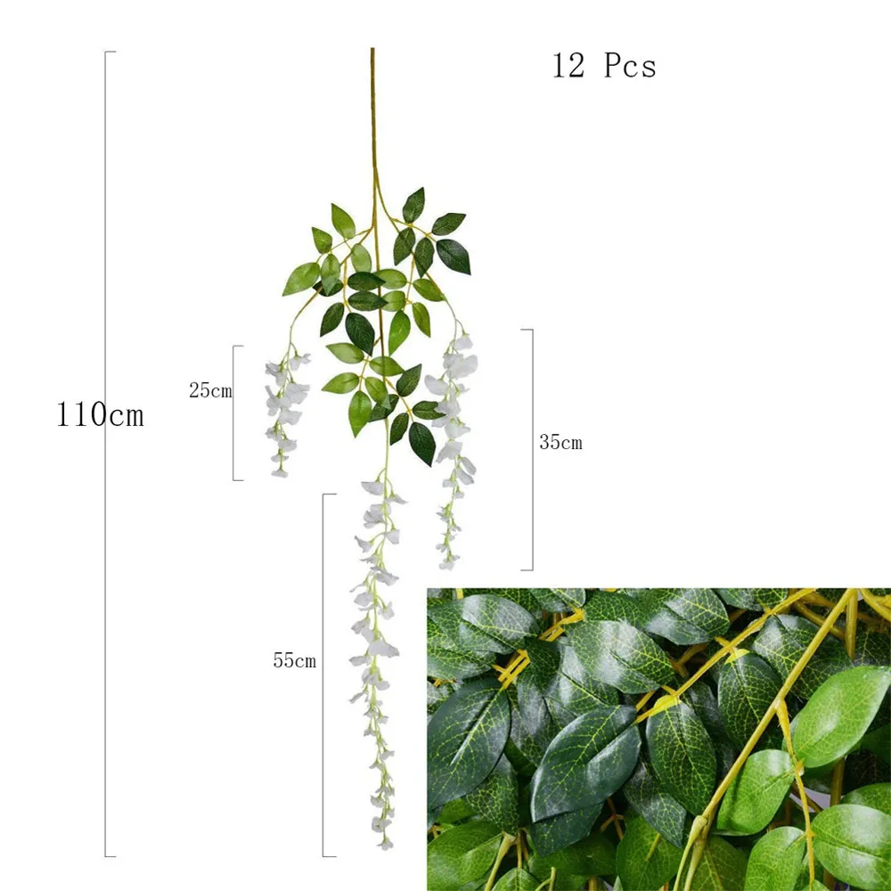 Содержание: Каждая посылка содержит 12 частей искусственных цветов лозы и 12 штук гирлянда из листьев плюща растения лозы.