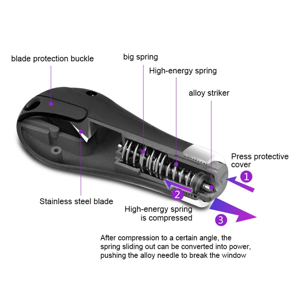 Описание: * 1. Материал: АБС + металл * 2. Цвет: черный, синий, желтый, красный * 3. Размер изделия: 82x35 мм * 4. Функция продукта: окно выключателя, ремень безопасности резак Особенности: * 1. Молоток безопасности из сплава разбивает окно автомобиля в аварийной ситуации, и его можно использовать снова в следующий раз. * 2. Острое лезвие обладает хорошей коррозионной стойкостью, может быстро отрезать ремень безопасности, что позволяет быстро выйти из автомобиля. С пластиковой защитой для предотвращения травм. * 3. Портативный мини-молоток небольшой и легкий. Есть также цепочка для ключей. Вы можете повесить мини молоток безопасности на кольцо для ключей, которое очень легко носить с собой. * 4. Защитная крышка ABS на молотке безопасности делает его безопасным для переноски. * 5. Яркий цвет и простой дизайн делают внешний вид модным, подходит для большинства чрезвычайных ситуаций. Посылка включает в себя: 1 x Безопасность молоток