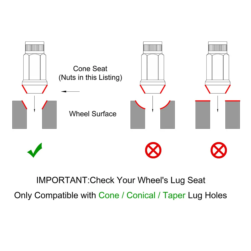 Люминесцентные Колесные гайки примерно на 30% прочнее, чем обычные колесные гайки. Открытый конец делает его подходящим для большинства колес.