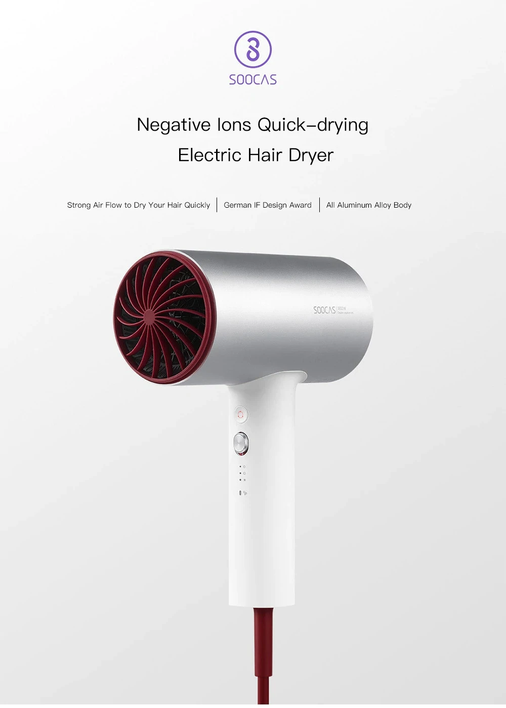 Soocas фен включает японскую эстетическую концепцию. Это просто,Белый, красный светильник с низким серым серебром имеет современный вид.
