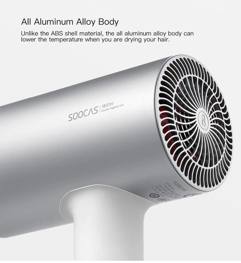 И мерцающий металлический корпус позволяет эффективно снизить температуру фена. Избегайте горячей