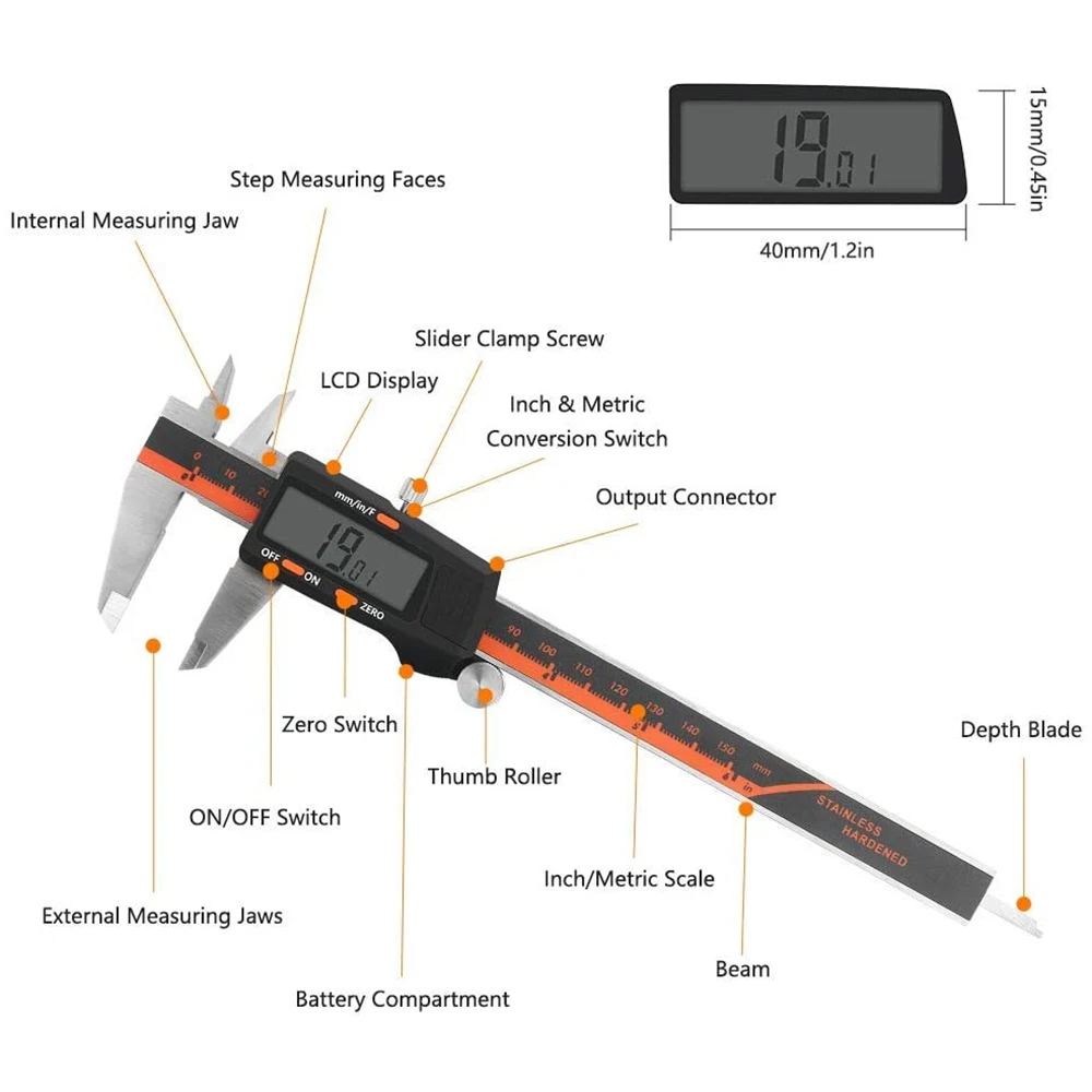 1. Замеры закаленной основной шкалы и челюсти из нержавеющей стали.
