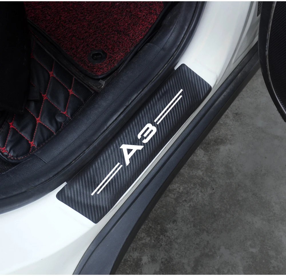 Для Audi A3 8P 8V 8L RS3 4 шт PU кожа углеродное волокно порог порога автомобиля протектор наклейки Добро пожаловать педаль Крышка Аксессуары