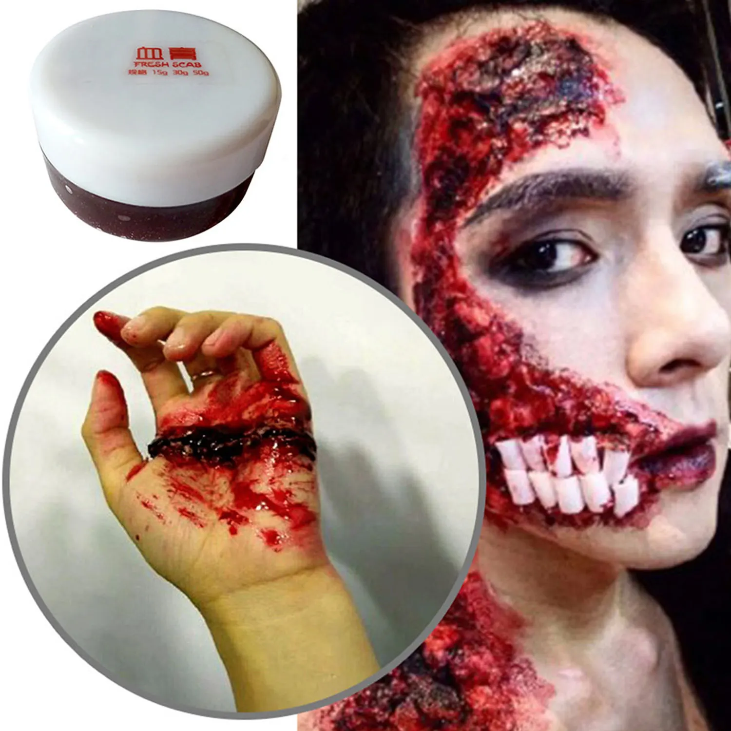 Воск для макияжа с имитацией шрамов + шпатель + 15 г коагулированной крови + 15 мл клейкая резинка + 10 мл масло для сцены Хэллоуина