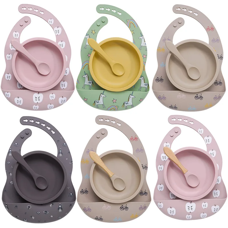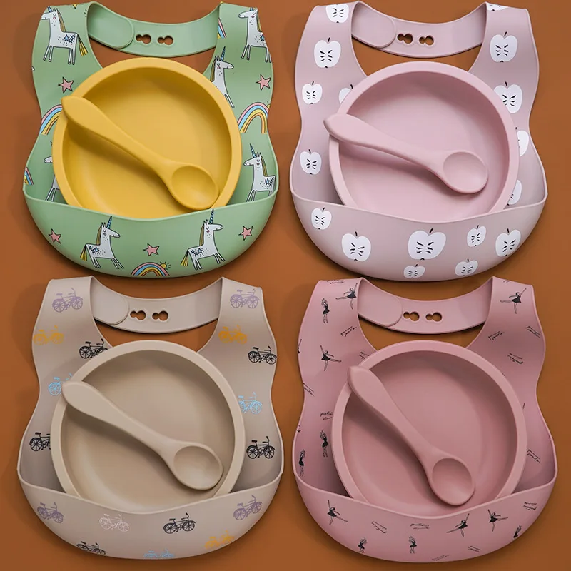3 шт BPA Бесплатно Детские Силиконовые столовые приборы для малышей обеденная тарелка и ложка печатные водонепроницаемые нагрудники мультфильм слюнявчик полотенце для детей