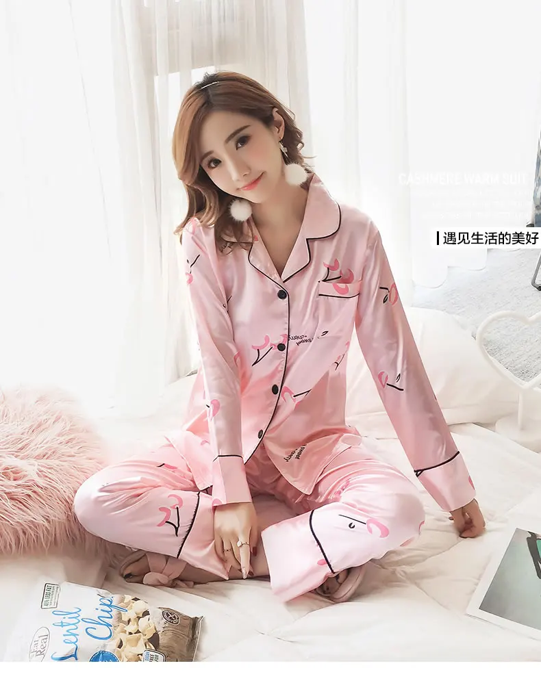 Шелковая пижама с длинным рукавом, женский осенний костюм, шелковая пижама комплекты, атласная пижама, одежда для сна, пижамы размера плюс 3XL 4XL 5XL, комплект одежды для сна