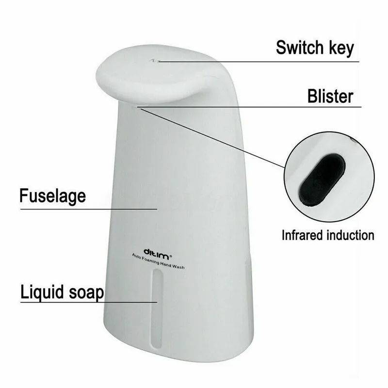 Описание: Принятие интеллектуального ИК-зондирования и абсолютно бесконтактного дизайна, чтобы избежать вторичной перекрестной инфекции 250 мл большой емкости, используется для длительного времени Разбавляющий рацион дезинфицирующего средства для рук в воду 1:12 Питание от 3 батареек AA (батарейки в комплект не входят) Подходит для различных вязких жидкостей, таких как дезинфицирующее средство для рук, шампунь и т. д. Подходит для ванной комнаты, кухни, больницы, отеля, офиса и т. д. Технические характеристики: Тип изделия: автоматический Пенящийся дозатор для мыла Режим работы: Автоматическое инфракрасное распознавание, Бесконтактный Источник питания: 3 батарейки типа АА, батарея в комплект не входит Ёмкость: 250 мл Материал: АБС-пластик Размер изделия: 10x6x20 см Цвет: белый Примечание: 【 Бесконтактный Пенящийся дозатор для мыла 】с помощью умный ИК-датчик, как только обнаружите руки, этот дозатор для мыла автоматически накачивает идеальное количество мыла. 【 Большая емкость 250 мл этот автоматический дозатор с большой емкостью 250 мл используется для многократного удовлетворения потребностей всей семьи. 【Широкое применение 】 пенораспылители предназначены для роскошных пенопластов. Подходит для различных жидких мыла, таких как шампунь, мытье тела, дезинфицирующее средство для рук и т. д. [Внимание! Пожалуйста, Разбавьте жидкое мыло для рук водой и равномерно Смешайте их перед заливом в автоматический дозатор. Разбавляющий рацион 1:12.