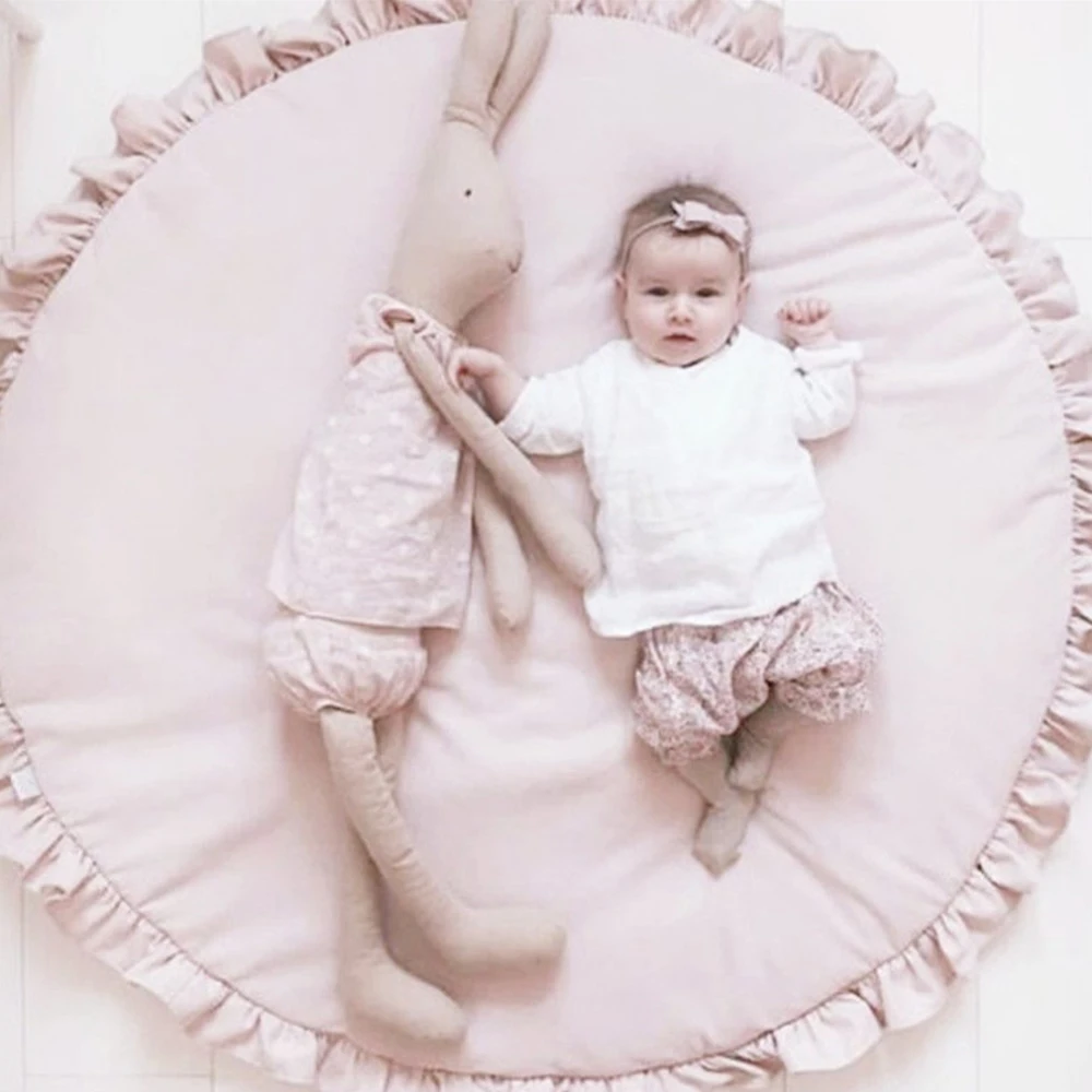 Круглый однотонный игровой коврик с оборками, милый и стильный