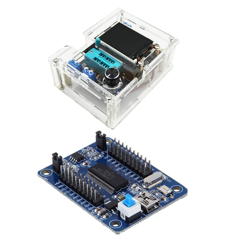1 шт. Полностью Собранный тестер транзисторов с DIY акриловый чехол и 1 шт. модуль логического анализатора: Цвет: синий и черный, Материал: АБС + металл и пластик