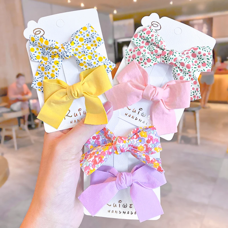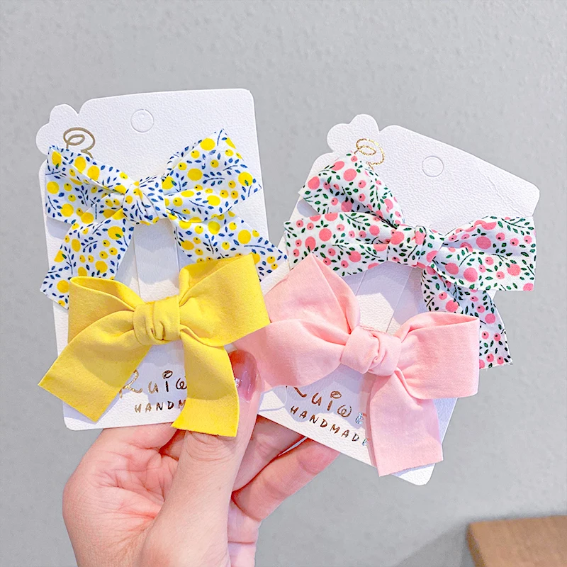 2 шт./компл., новые милые разноцветные заколки для волос с цветочным принтом и бантом, милые заколки для волос, заколки для волос, модные аксессуары для волос Размеры: длиной около 7,5 см Упаковка: 2 шт./компл. упаковка