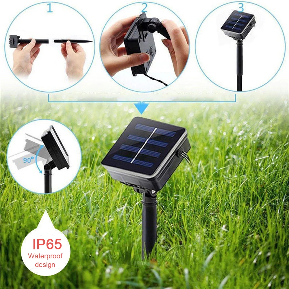 * Водонепроницаемый Дизайн P65 обеспечивает декоративное освещение, выдерживающее дождливую погоду, идеально подходит для использования в помещении или на открытом воздухе. (солнечные модули в комплект не входят).