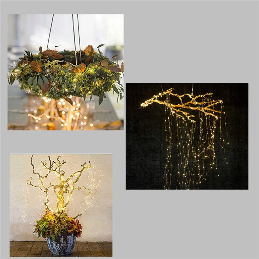 * DIY Moldable Форма: 5/10 нитей (100/200 светодиодов) прочные и термостойкие медные проволочные струнные огни могут быть легко согнуты и формы d в любой форме, как вам нравится. Идеально подходит для создания атмосферы или освещения, наденьте на дерево, Виноградную лозу, крыльцо, окно спальни, балкон, стену, идеально подходит для таких случаев, как День благодарения, Рождество, вечеринки, свадьба, день рождения, И т. Д.