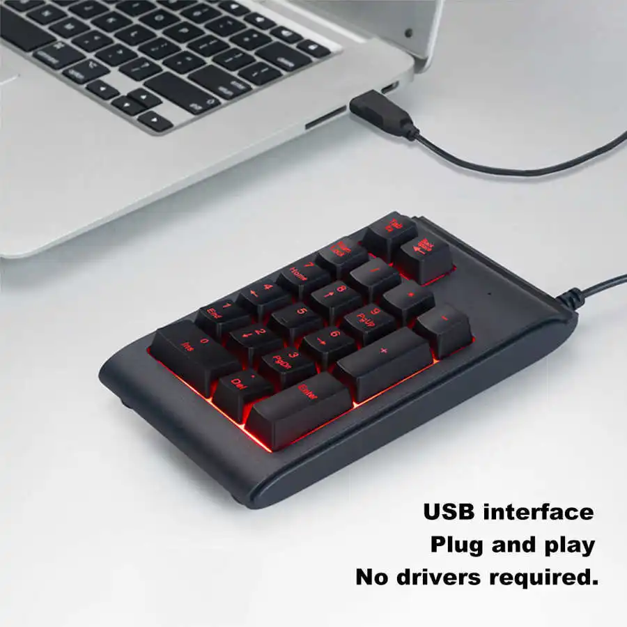 С подсветкой клавиатуры USB Проводная цифровая 19 ‑Key Gaming Keyboard Механическая Feel триколор дыхание черного цвета