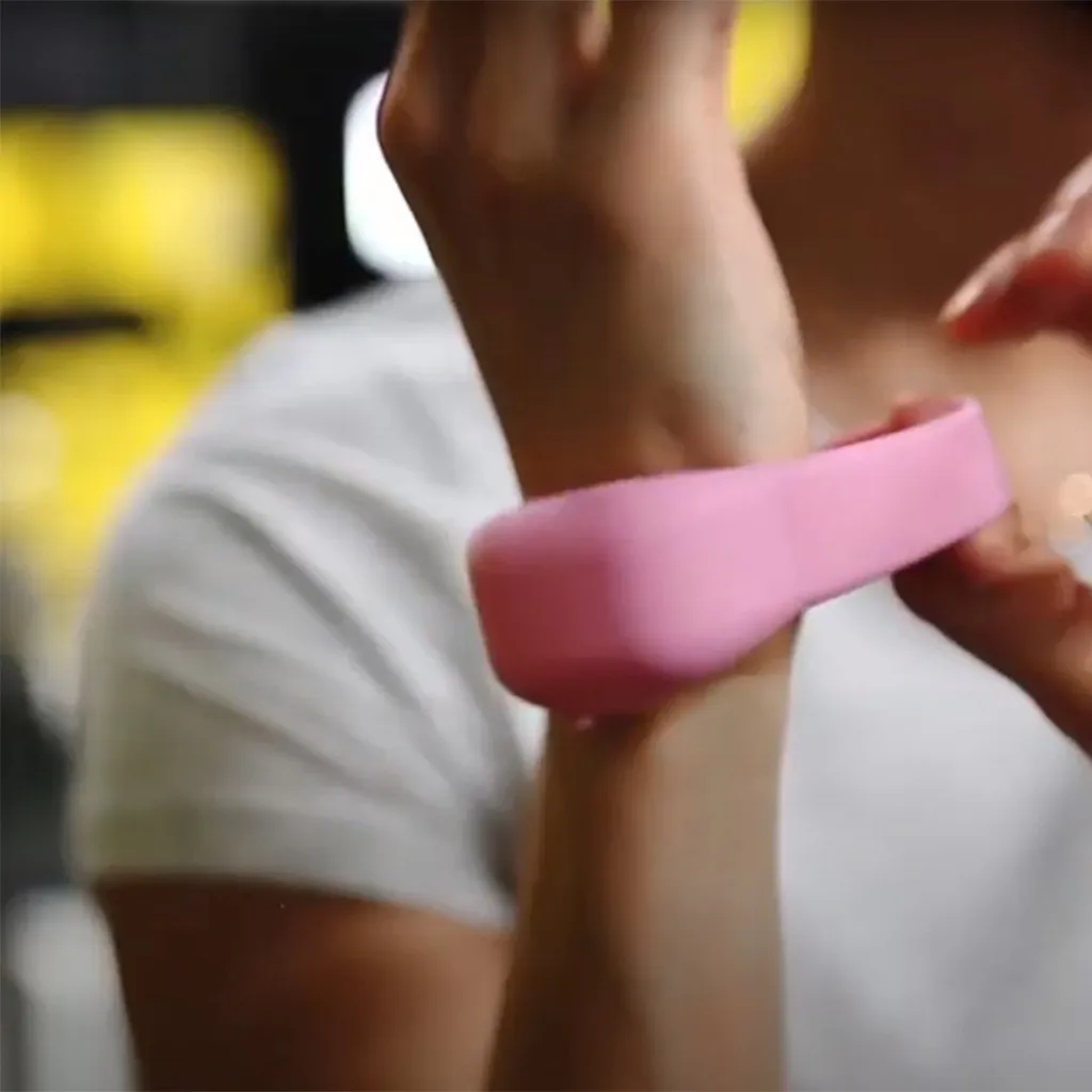 Заполните жидкость на выбор и нажмите на логотип браслета, чтобы Избавьтесь от отдыха.