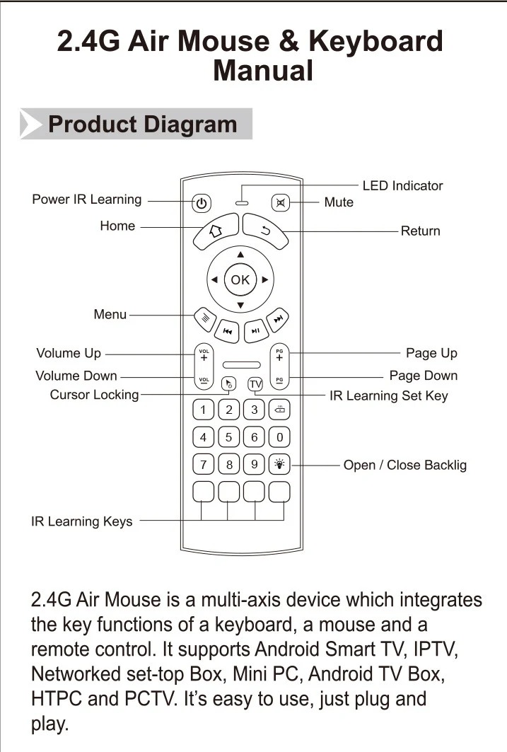 4. Для ИК-функций обучения, ваш пульт ДУ должен поддерживать протокол NEC, в противном случае не может заполнить эту функцию. Также некоторые ТВ-бренды, такие как SONY, Pansonic, LG, ... Пульт дистанционного управления для ТВ отправляет смешанные ИК-singnals (это означает, что нажмите один раз, один раз, когда вы нажимаете снова одну и ту же кнопку, другой singnal), если это, ACEMAX/Gowell Bluetooth также не может заполнять ИК-функции обучения. Это не означает, что пульт неисправен.
