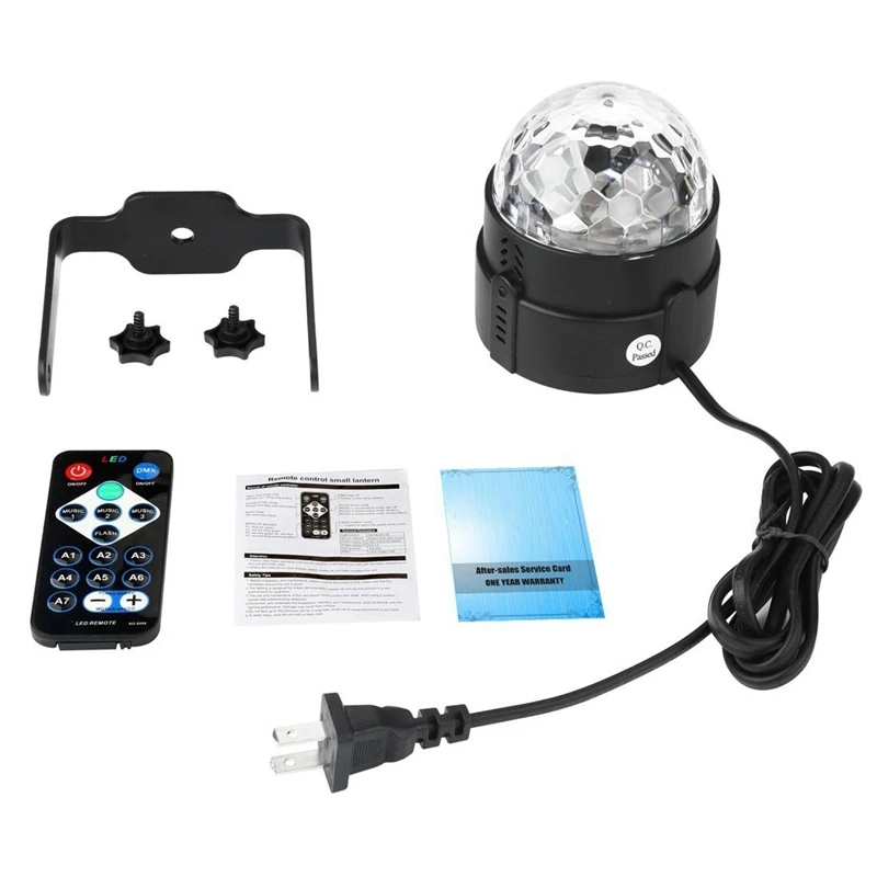 Яркий светильник для дискотеки с 7 режимами: светильник для дискотеки легко выбрать однотонные или разноцветные с помощью удобного пульта дистанционного управления. (Красный, зеленый, синий, красный/зеленый, красный/синий, зеленый/синий, или все цвета вместе).