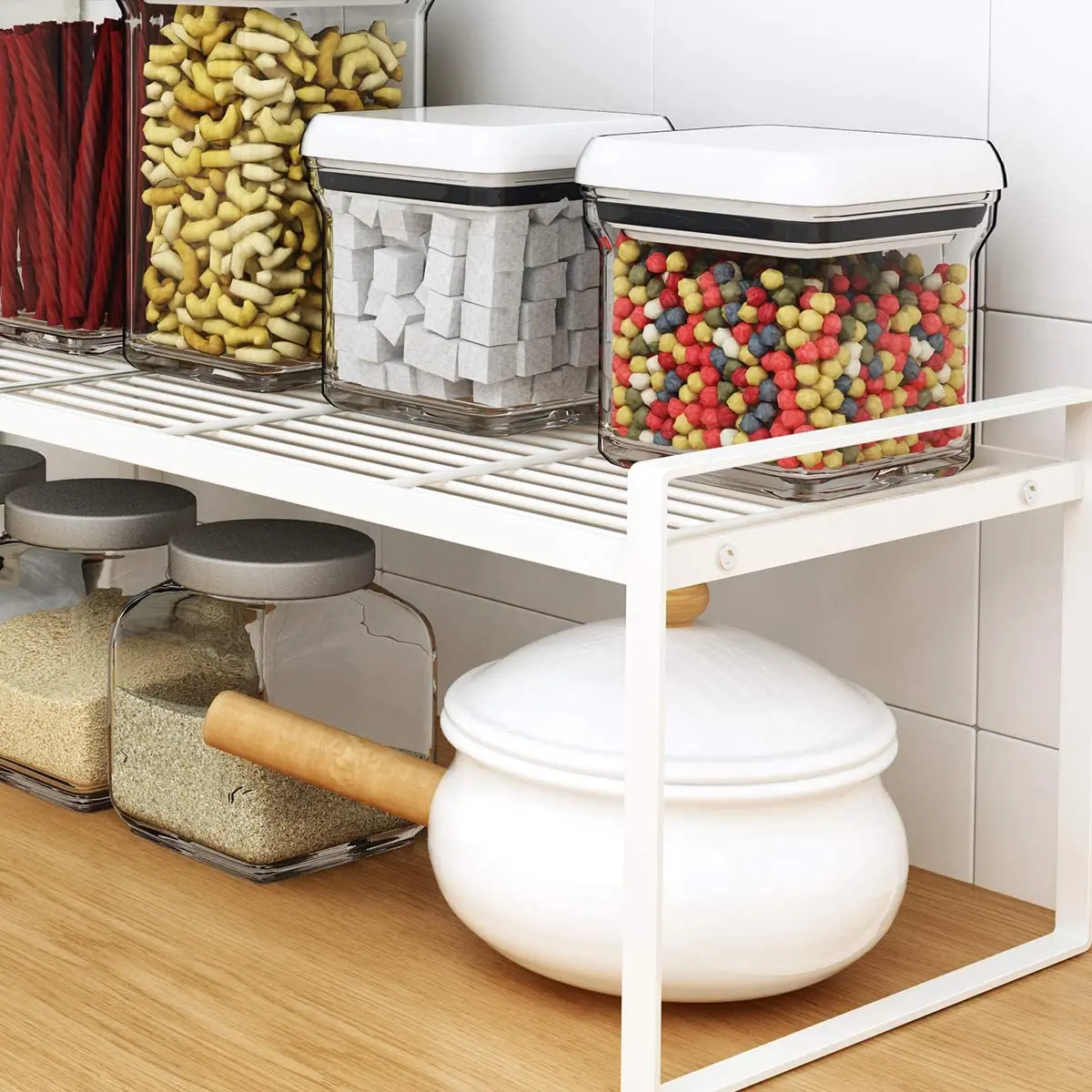 Подставка для шкафа: Увеличьте пространство для шкафа. Легко хранить различные банки, бутылки. (Только Органайзер, банки в комплект не входят).