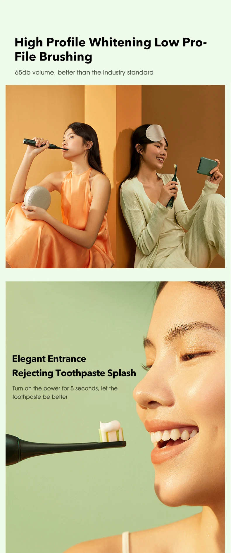 Особенности: * Модернизированный акустический двигатель обеспечивает мощную мощность отбеливания и заботится о здоровье зубов. * Устранить зубная паста всплеск * Быстрая зарядка 4 часа, 30 дней автономной работы * Запуск в течение 5 секунд, постепенно усиливается, снижение уровня вибрации 65Дб, 396000 раз/частота. * Без медной головки щетки