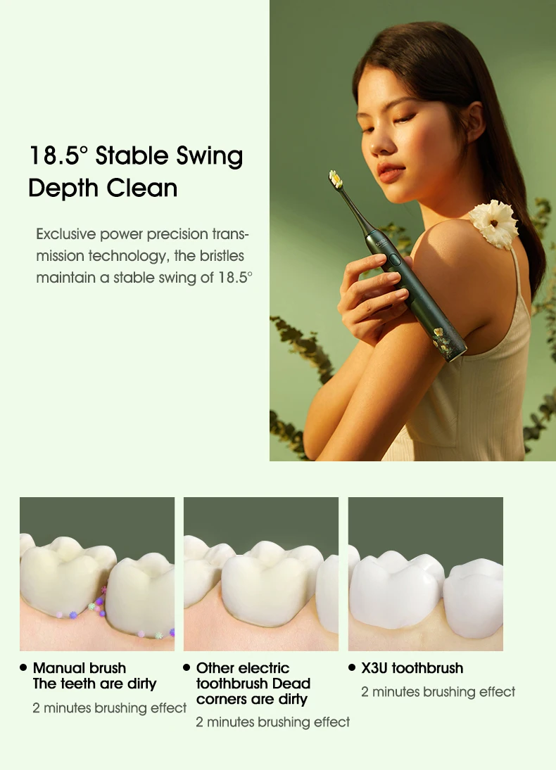 Технические характеристики: Бренд: Xiaomi SOOCAS Модель продукта: X3U Van Gogh Цвет: зеленый Режим питания: Тип зарядки Время зарядки: 4 ч Модель головки щетки: Универсальная бесмедная головка щетки Размер изделия: 180 мм * 50 мм * 50 мм Вес нетто: 250 г