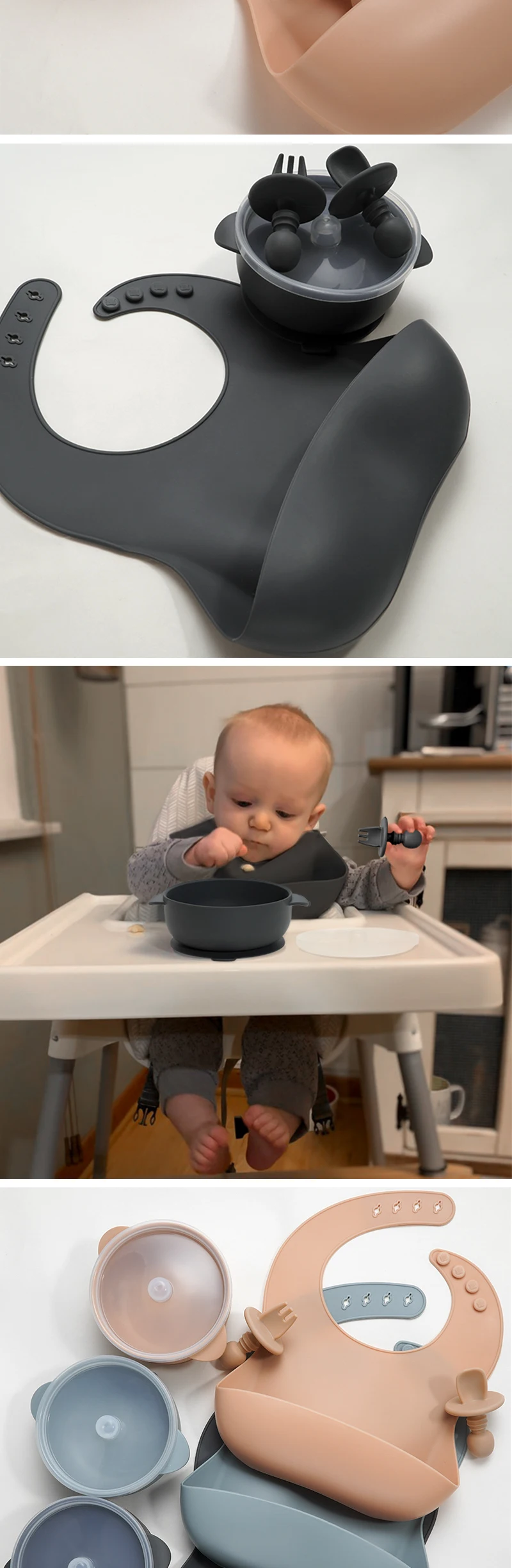 Детские Силиконовые вещи, одноцветные водонепроницаемые нагрудники, складные Слюнявчики, полотенце и мини-вилка, ложка для детей, герметичные миски с крышкой