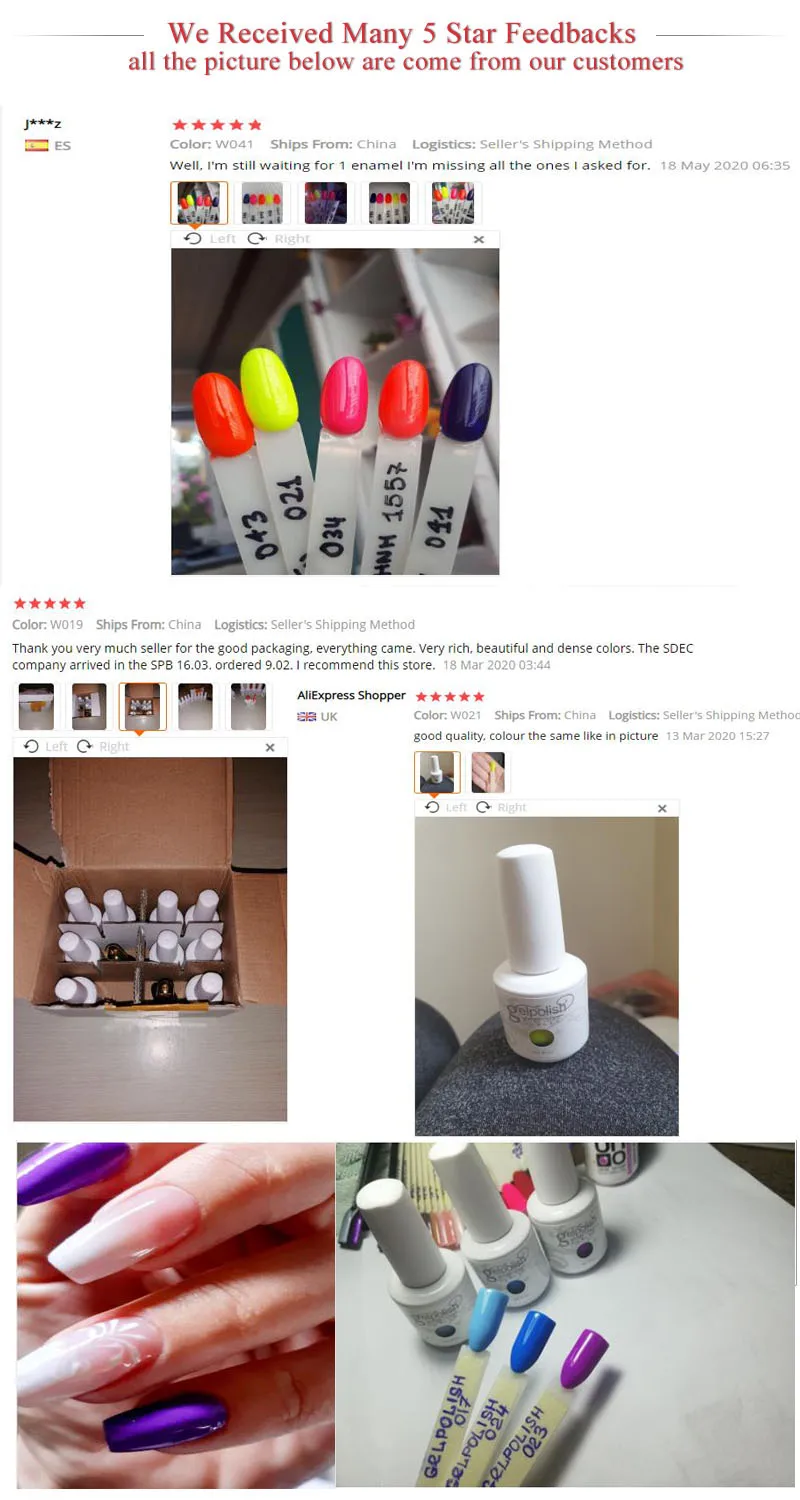 Характеристики Товара: Название бренда: SHEENIA Название: цветной гель Объем: 15 мл Цвет: 60 цветов s Излеченная: УФ/Светодиодная лампа Мы уверены, что наш Гель-лак лучшего качества на Aliexpress. -Качество-наш первый приоритет. -Светильник, почти без запаха (только верхнее покрытие и основа имеют умеренный запах), мы применяем только органическую текстуру для защиты вашего здоровья. -Цвет будет сиять до 30 дней. -Цвета на выбор, подходят для всех случаев.