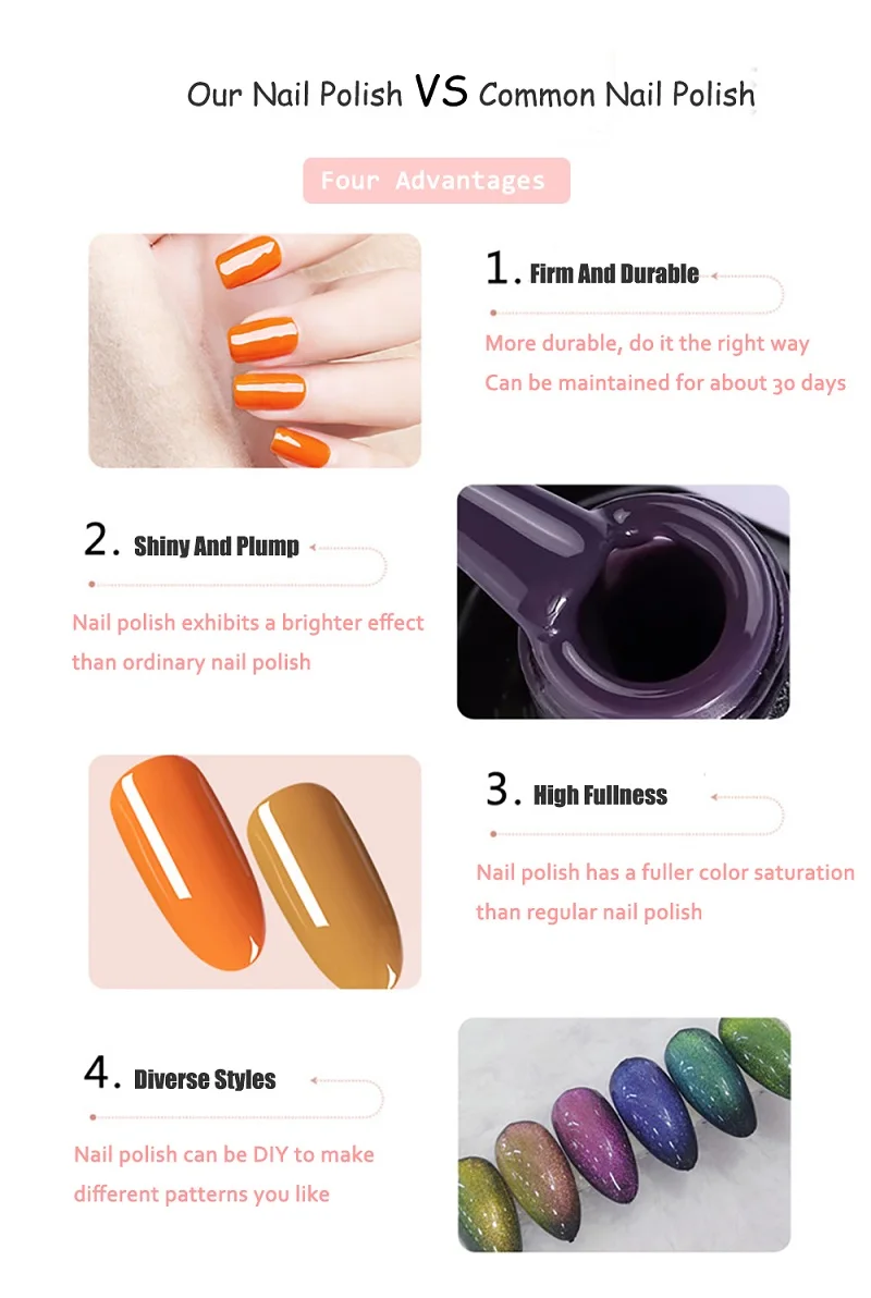 Для удаления: -1. Отмачивайте ногти в акриловом удалителе в течение 5 минут. -2. Аккуратно Наденьте на каждый ноготь всю эмаль для ногтей. Внимание: 1. Объем составляет 15 мл. Поскольку емкость бутылки составляет более 15 мл, гель для ногтей не будет полностью заполнен бутылкой! 2. Плотно закрываются. Держите подальше от солнечного света. Хранить в недоступном для детей месте.