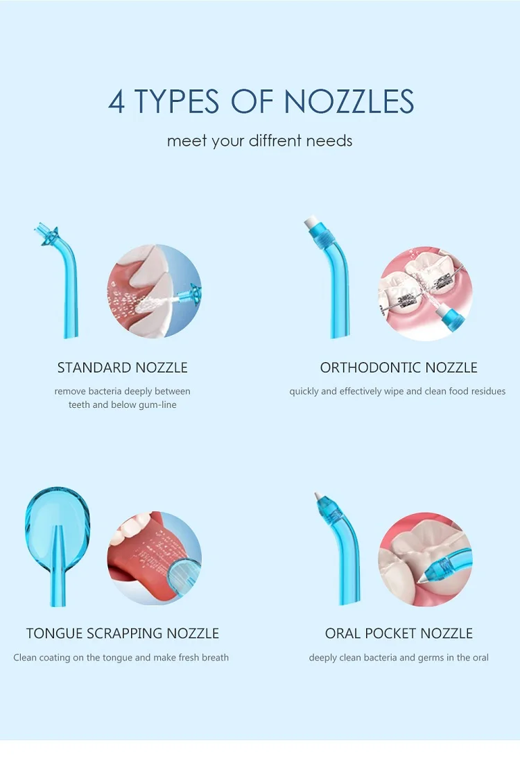 Основные характеристики: ● Мощная импульсная вода: эффективно и мягко чистить зубы ● Удобный большой резервуар для воды: во-вторых, не добавляйте воду при использовании. ● Стабильная система контроля напряжения: поддерживать высокую производительность очистки. ● 3 режима очистки: подходит для различных условий полости рта Спецификация: ● Название продукта: SOOCAS W3 портативный ирригатор полости рта ● Подходящий пользователь: старше 13 лет ● Метод зарядки: зарядка через USB ● Напряжение зарядки: 5 в ● Время зарядки: 4-6 ч ● Полная батарея используется для: 30 дней (1 раз каждый день, 1 мин каждый раз) ● Емкость аккумулятора: 2200 мач литиевая батарея ● Режим очистки: 3 режима (деликатный/стандартный/импульсный массаж) ● Материал: сертифицированный FDA абс-сопло + корпус из пищевого поликарбоната ● Класс водонепроницаемости: IPX7 ● Значение шума: ≤ 75 дб ● Размер: 73,3*45,6*274 мм (с насадкой) ● Вес нетто: 275 г (с насадкой) ● Емкость резервуара для воды: 230 мл