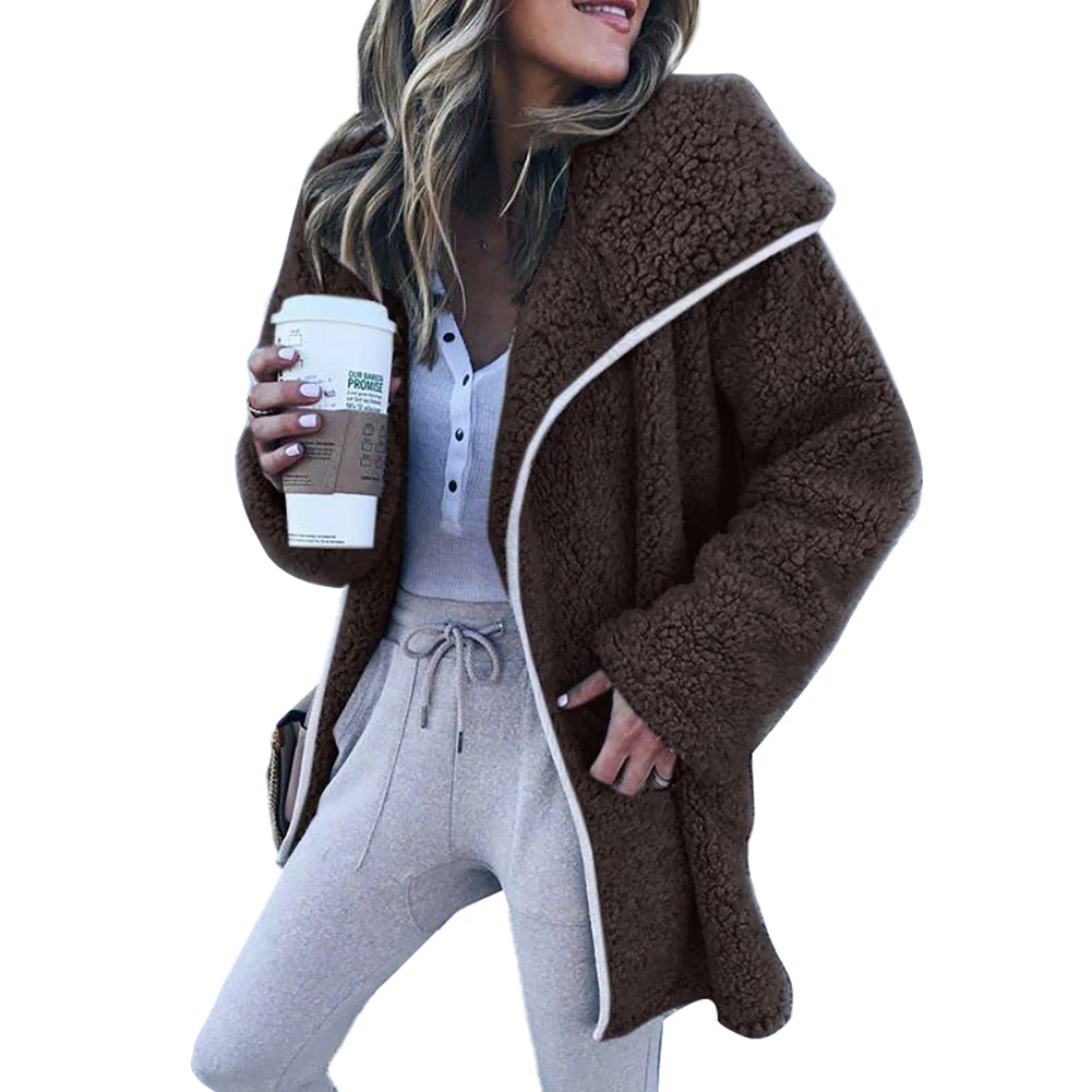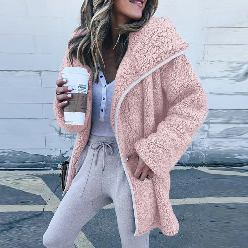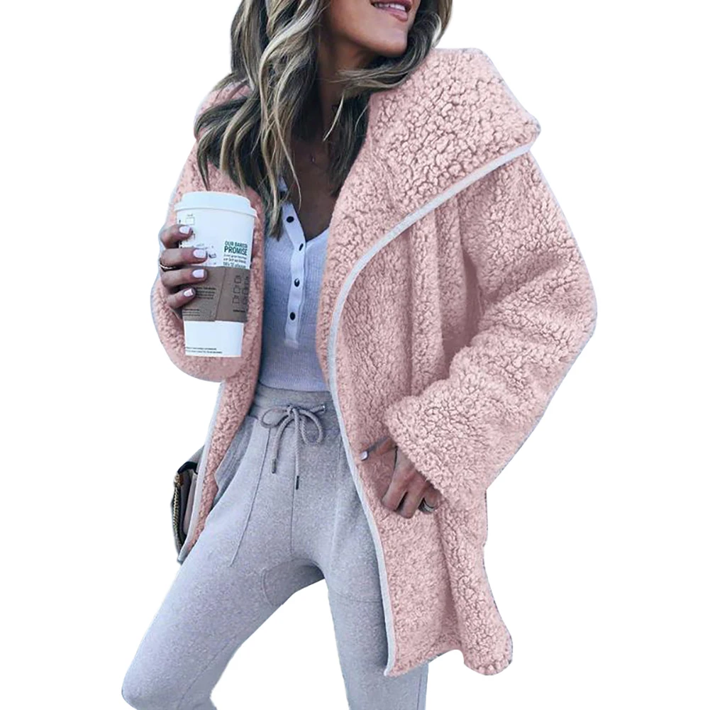 Женская осенне-зимняя однотонная теплая куртка с длинным рукавом из искусственного флиса
