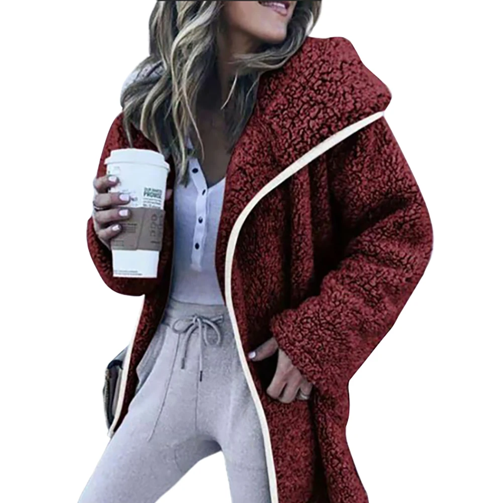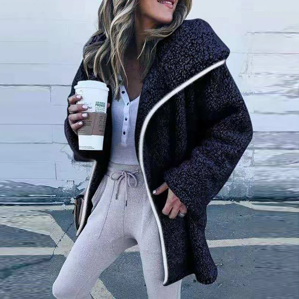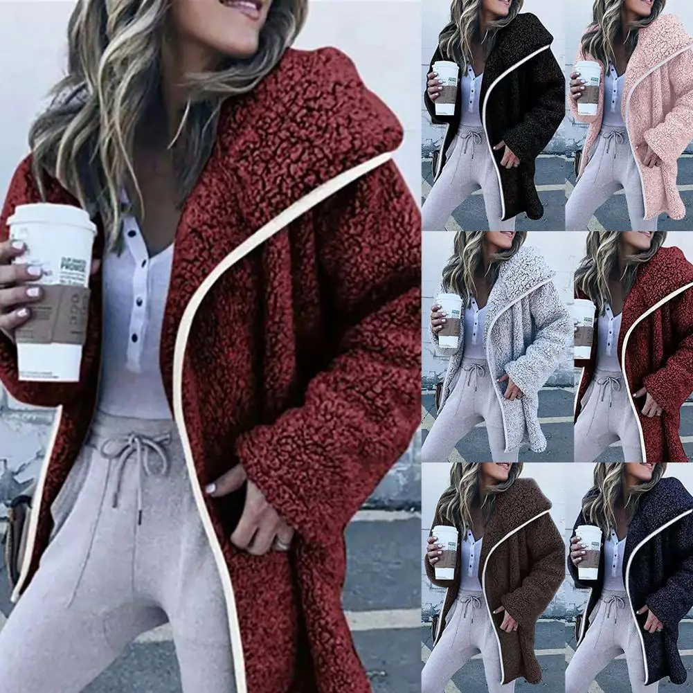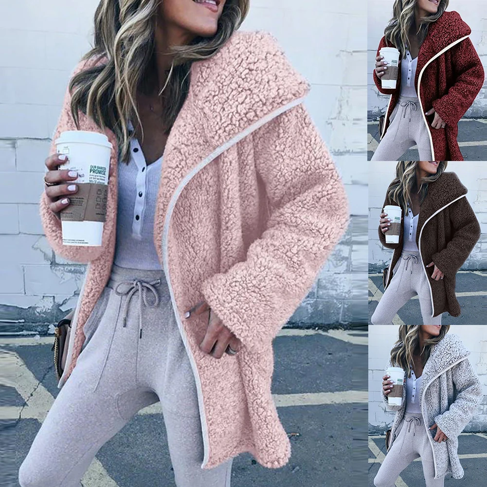 Женская осенне-зимняя однотонная теплая куртка с длинным рукавом из искусственного флиса