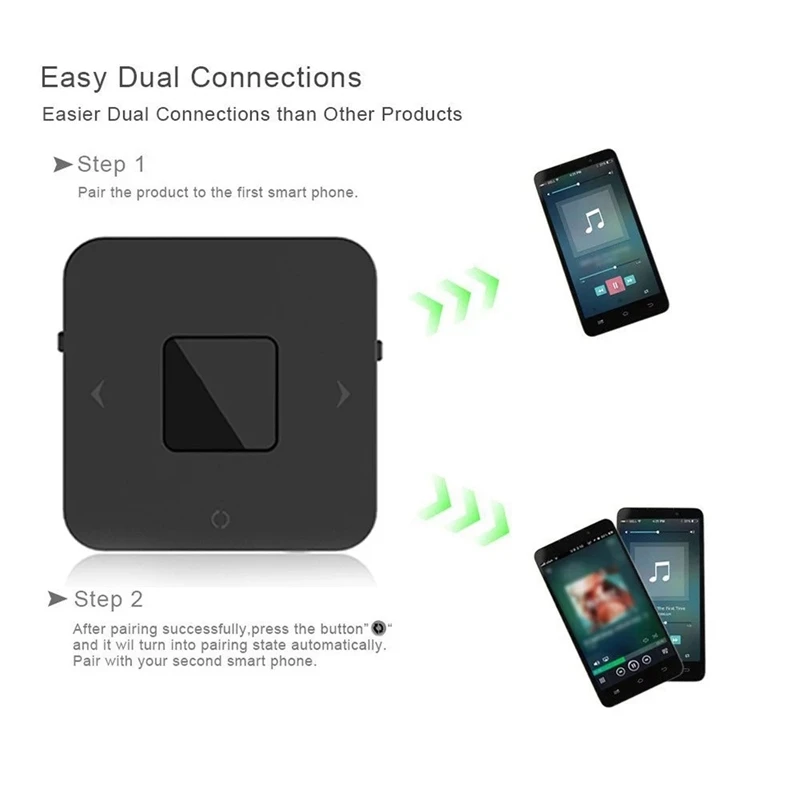[Функция 2 в 1] режим передатчика Беспроводная передача o от не-BT (плеера, такого как TV / mp3/настольный) Домашняя стереосистема к BT динамику или гарнитуре. Режим приемника по беспроводной сети передает о с телефона или планшета с поддержкой BT на проводные стерео, колонки или наушники.