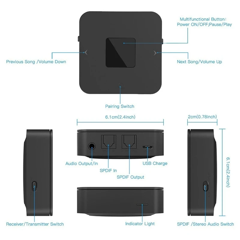 [BT 5,0] интегрированный трансивер BT 5,0, который может обеспечить более эффективную передачу, более длительную передачу расстояния и более стабильные сигналы, значительно улучшая производительность беспроводного передатчика приемника 2-в-1.