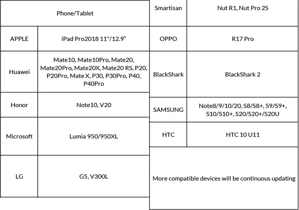 Функция выхода, совместимая с HDMI, нуждается в поддержке режима DP alt, пожалуйста, проверьте таблицу ниже, если вы не уверены, пожалуйста, свяжитесь с нами перед заказом.