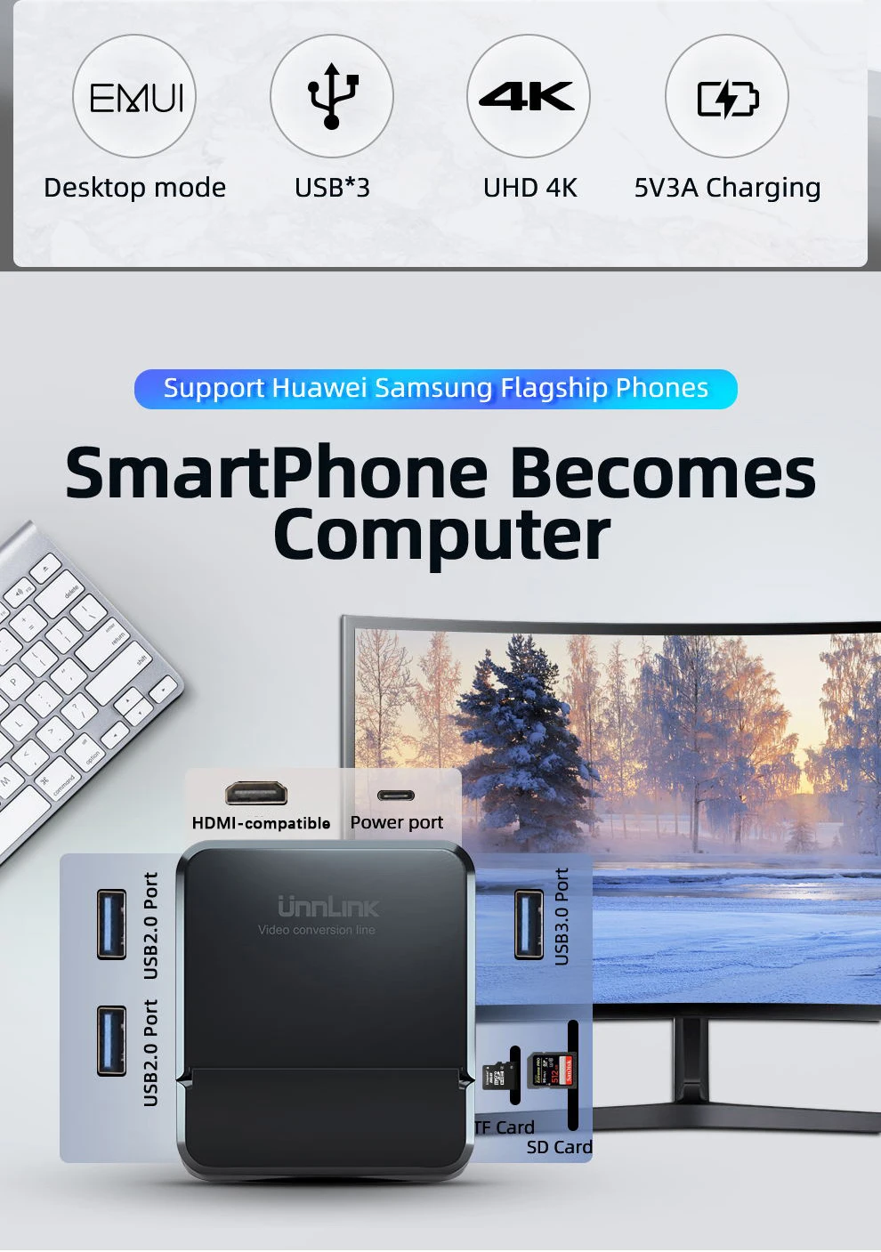 Настольный режим uSB * 3 UHD 4K 5V3A зарядка