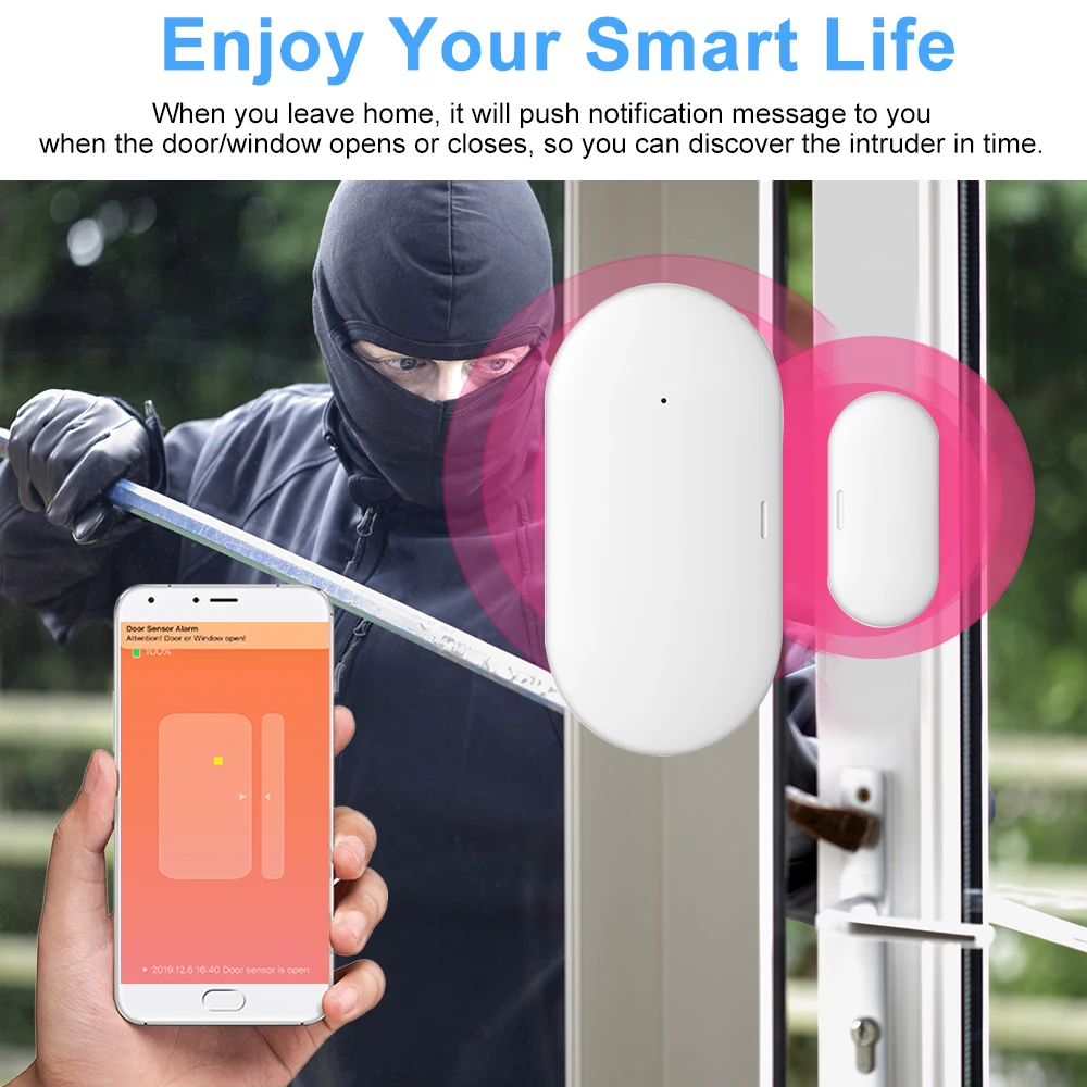 【Enjoy ваши умные Life】После подключения к ZigBee Hub, когда вы выходите из дома, он будет нажимать уведомление к вам, когда дверь/Окно открывается, так что вы сможете вовремя найти незваного.