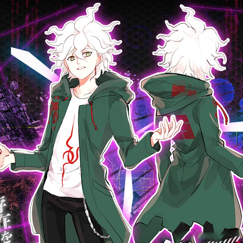 Аниме Супер Danganronpa 2 Nagito Komaeda Косплей Костюм Хэллоуин для мужчин и женщин мужчин куртка с капюшоном Пальто футболка парик ролевые игры C160K227